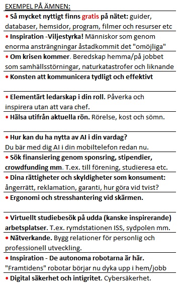 varje månad en föreläsning digitalt (ca. 50-70 min) inom